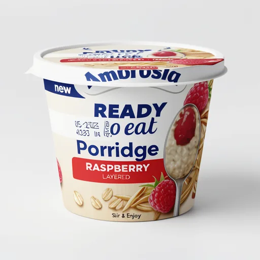 Ambrosia Ready to Eat Porridge Oat Cereal Pot Raspberry Layer 210g