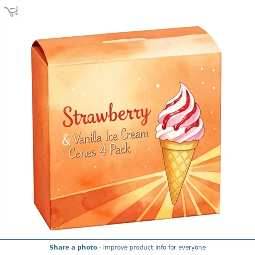 Strawberry & Vanilla Ice Cream Cones 4 Pack