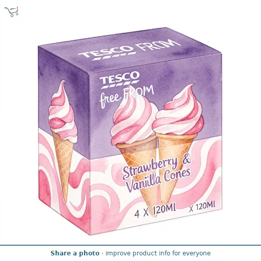Tesco Strawberry & Vanilla Cones 4 X 110Ml